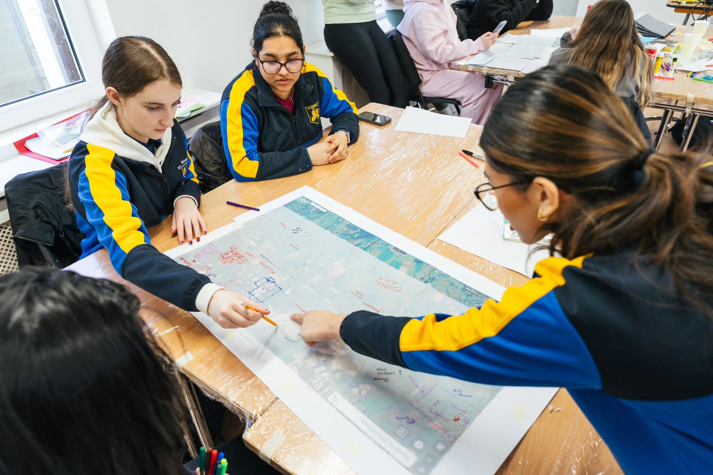 The first phase involved investigating the history and character of the area. Students walked the locality, documenting their observations through photography, printmaking, sketching, and collecting found objects. They were invited to reflect on the shift from rural to urban landscapes. The second phase used historical and contemporary maps to identify areas of interest and pose reflective questions. Throughout, the emphasis remained on process and collaboration. Students then created 3D maps of reimagined villages based on their discussions and research.