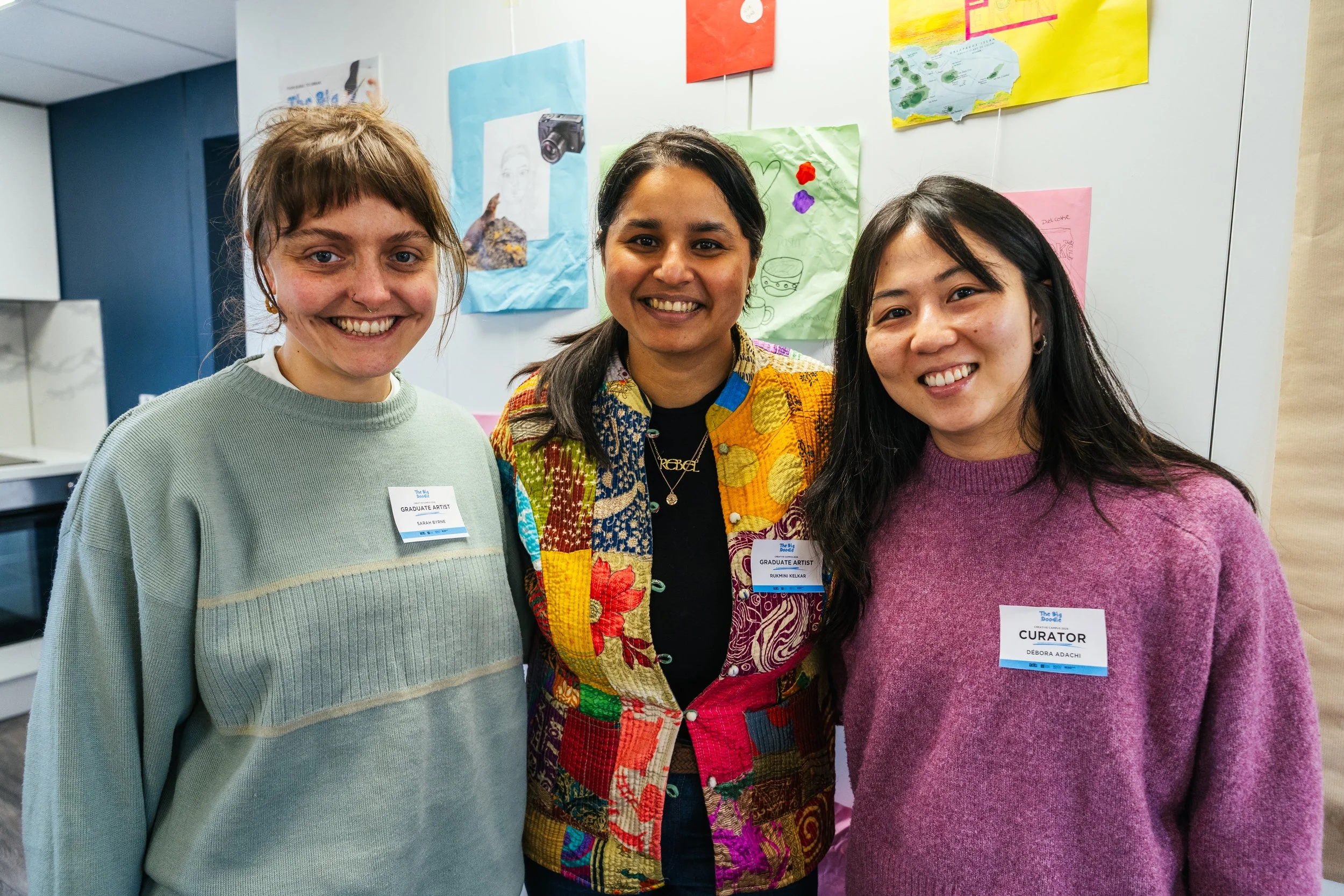 Graduate Artists: Sarah Byrne, Rukmini Kelkar with Curator: Debora Adachi. Photo by Connor Keegan (2026)